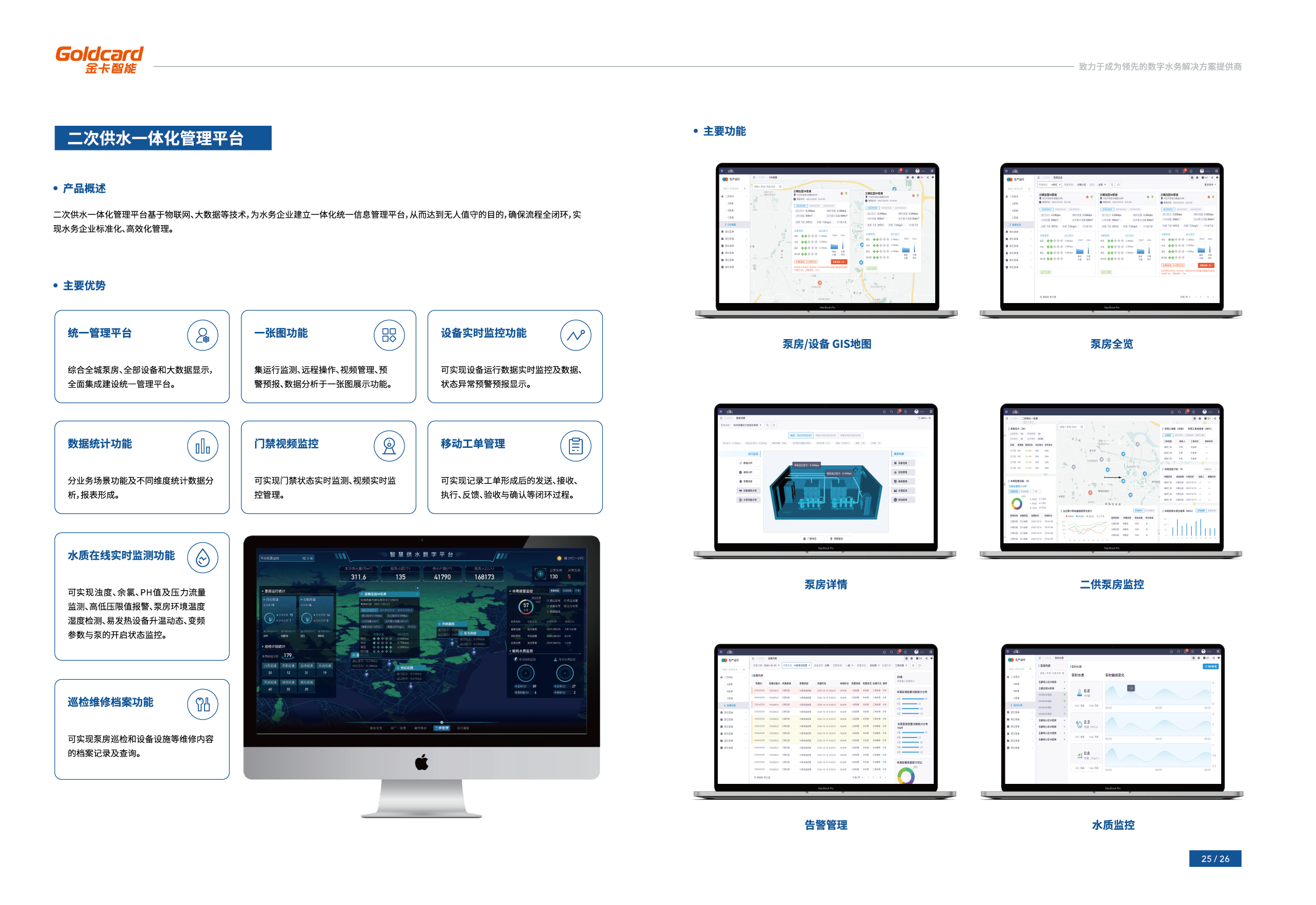 智慧水务整体解决方案,实现智能终端的感知、智能网络的传输、智能数据的采集和业务运营,并一直延展到面向C端用户的智慧服务,实现了设备到人的端到端贯通。
